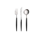 12 table fork, 12 table knife, 12 table spoon, 12 dessert fork, 12 dessert knife, 12 dessert spoon, 12 fish fork, 12 fish knife, 12 tea spoon, 12 coffe spoon, 1 soup ladle, 1 serving spoon, 1 sugar ladle, 1 carving knife, 1 serving fork, 1 gravy ladle, 1 cake server, 1 cheese knife, salad serving