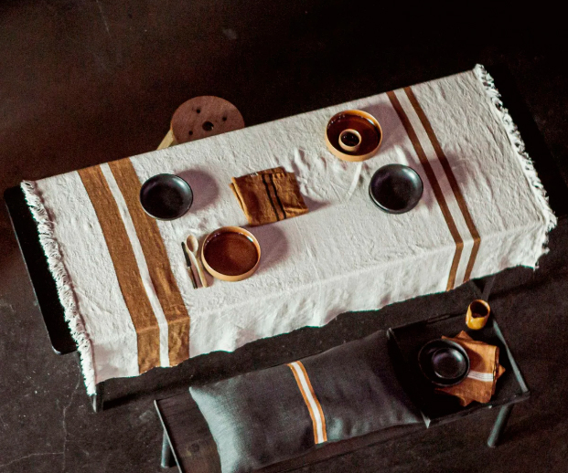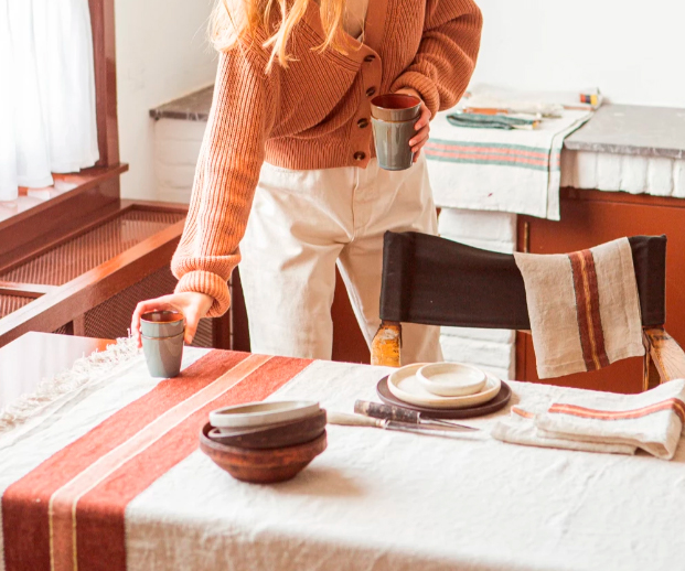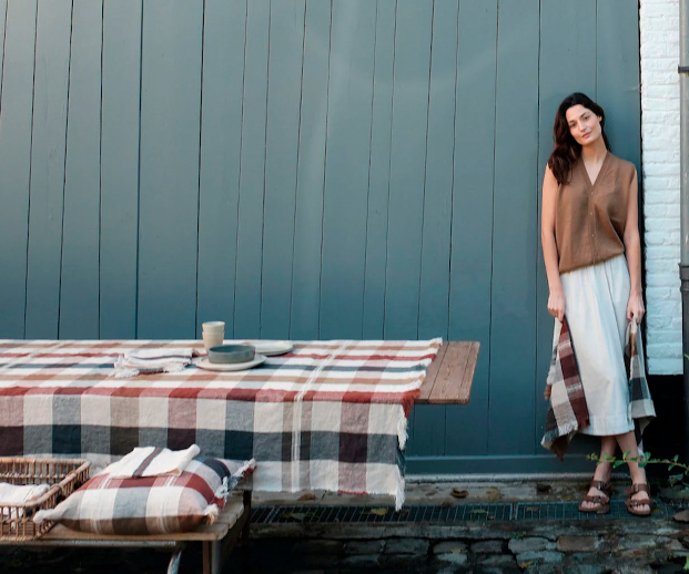 The Belgian Table Throw tablecloth from Libeco is made from 100% Belgian linen, with a washed finish that gives it a soft and natural texture. Available in two sizes (140 × 180 cm and 140 × 230 cm) and in distinct patterns such as Fisherman (nautical stripe) or Maxine (plaid/country), it includes fringes at the ends. Ideal for giving the table a sophisticated and relaxed look, combining Belgian textile tradition and functional design for everyday use or special occasions. (Libeco Brand)