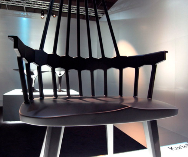 The Comeback chair by Kartell, designed by Patricia Urquiola, is a contemporary reinterpretation of the classic Windsor chair, combining tradition and innovation in a single design gesture. The enveloping thermoplastic backrest provides comfort and visual identity, while the iron legs reinforce the stability and graphic character of the piece. Versatile and elegant, the Comeback is ideal for dining rooms, workspaces, or contract environments that value iconic design and functionality. (Kartell brand).