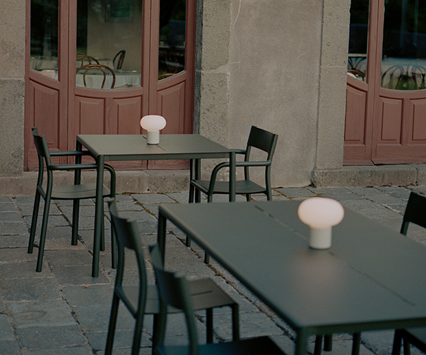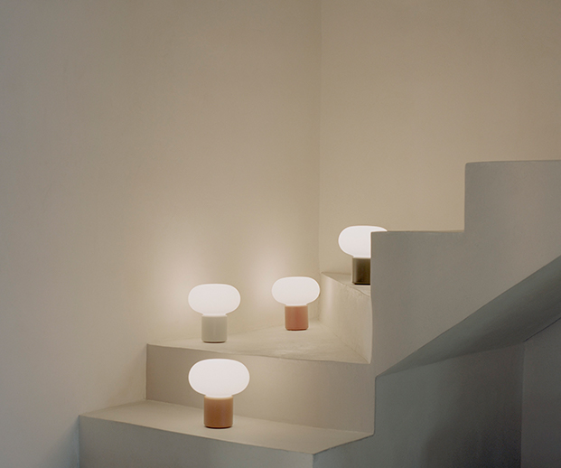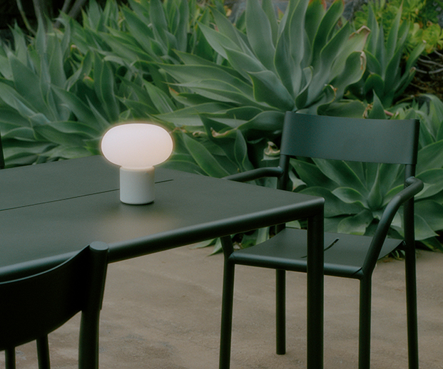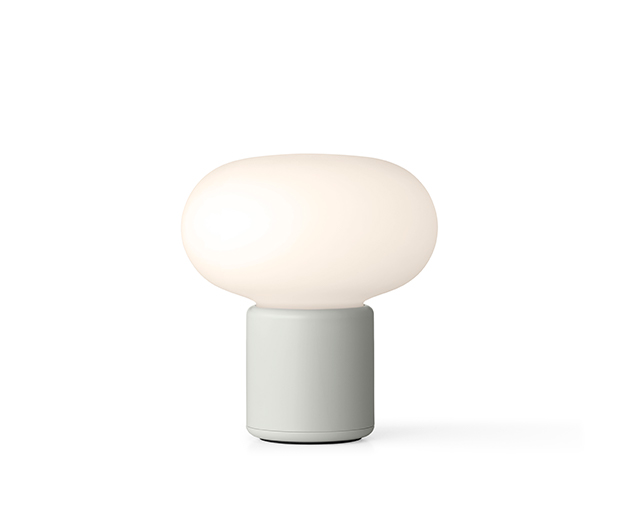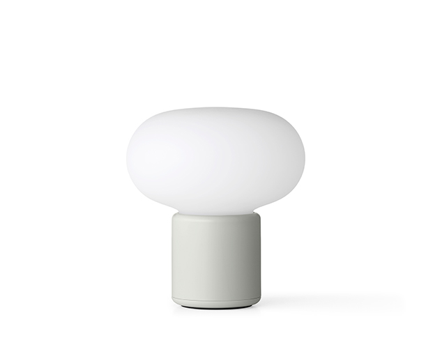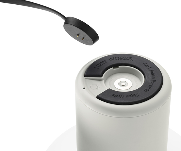 The Karl-Johan Portable Table Lamp by New Works is a portable and rechargeable table lamp whose organic design, inspired by forms in nature, combines elegance and versatility with an impact-resistant ABS and polyethylene structure, and an opal shade that diffuses soft light. Measuring 18 cm in height and 16 cm in diameter, it offers integrated 2700K LED light with adjustable intensity in three levels and a battery life of up to 22 hours, making it ideal for both indoor and outdoor use on terraces or balconies. Its lightness and resistance to elements such as rain, dew, sand, and soil make it a functional and aesthetically pleasing piece for any space. (New Works brand)