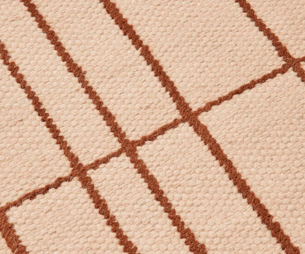The Sen rug by Ferm Living is a contemporary-inspired textile piece that combines graphic patterns with a subtle and sophisticated color palette. With a design that evokes abstract landscapes and a strong artistic component, Sen adds depth and texture to the space, functioning as a central element in living rooms, bedrooms, or offices. Produced with quality materials and careful finishing, this rug combines comfort, durability, and Scandinavian aesthetics, creating welcoming and balanced environments. (Ferm Living brand).