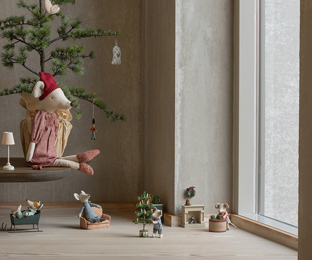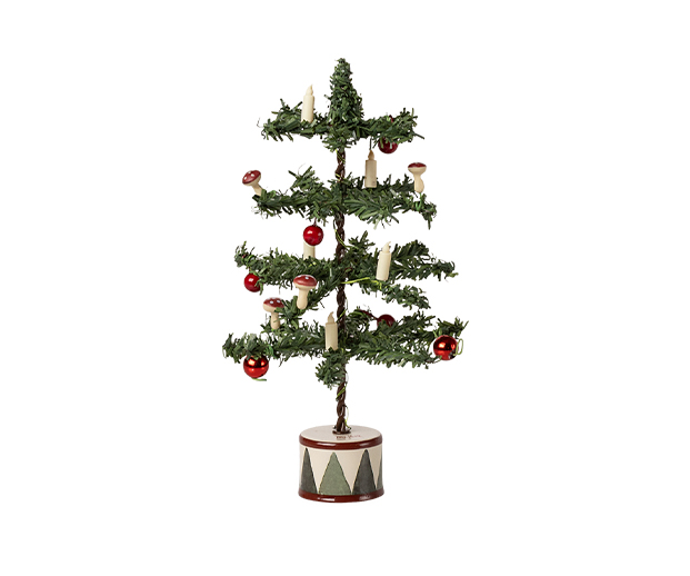 A pequena árvore de Natal para ratinhos da Maileg é um acessório encantador em escala reduzida (~16 cm de altura) perfeito para completar a casinha dos ratinhos ou cenários de brincadeira. Decorada com mini-ornamentos e luzes LED (bateria tipo CR2032 não incluída), cria um ambiente festivo e mágico para as famílias de ratinhos Maileg. Ideal para crianças a partir dos 3 anos ou como peça de coleção.(Marca Maileg)