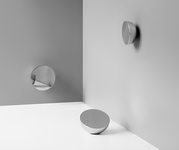 O espelho de parede Aura da New Works transforma um objeto funcional numa peça escultural. A moldura em metal moldado apresenta uma forma orgânica e maciça, que cria profundidade e reflete a luz de forma marcante. O espelho circular é levemente inserido no volume metálico, resultando numa peça decorativa forte e minimalista, perfeita para entradas, salas ou quartos, onde a estética e a funcionalidade se encontram num design contemporâneo. (Marca New Works)