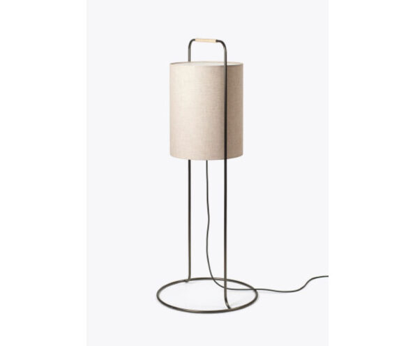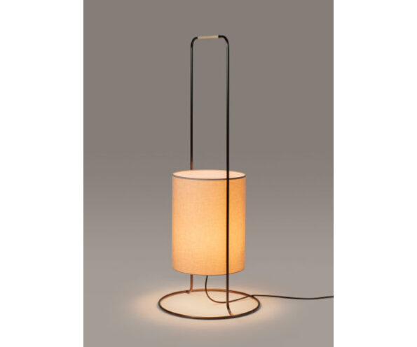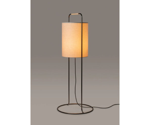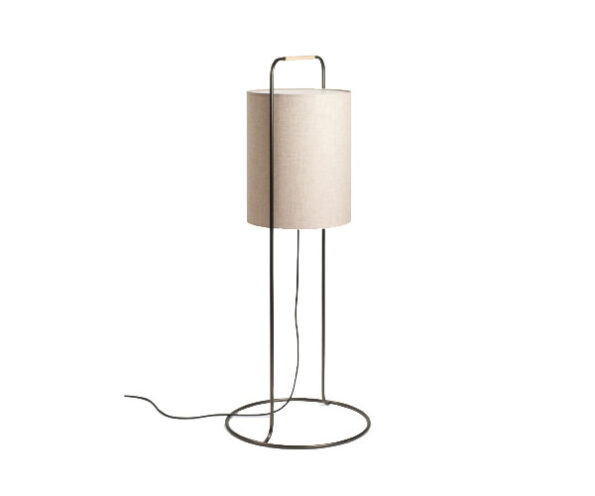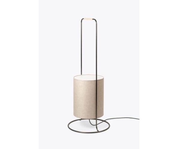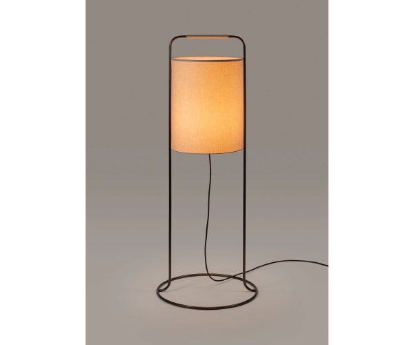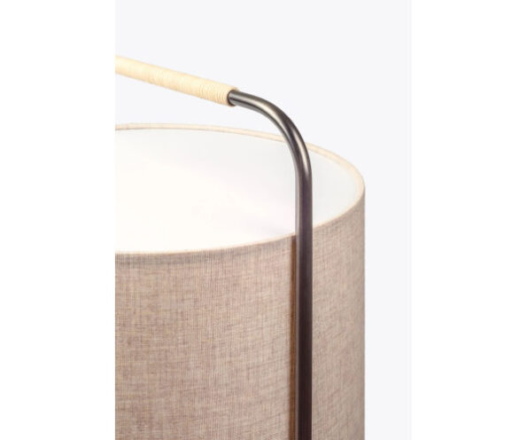 Material: Abajur em linho; estrutrura em aço com acabamento grafite; pega em rattan.