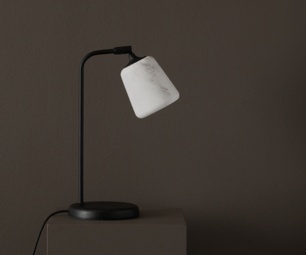 O candeeiro de mesa Material da New Works é uma peça versátil que celebra a beleza dos materiais naturais. Com estrutura em aço ou alumínio lacado e abajur disponível em várias opções: como mármore, betão, cortiça, madeira folheada ou vidro opalino, que adapta-se a diferentes ambientes e estilos. A luz suave e difusa cria uma atmosfera acolhedora, ideal para mesas de apoio, secretárias ou zonas de leitura, combinando simplicidade escandinava com elegância tátil. (Marca New Works).