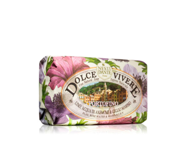 A harmonia clássica da Anémona e do lírio marinho encontra a insólita nota de linho para apresentar uma sensação inesperada de alegria. Dolce Vivere é uma homenagem ao estilo de vida e à beleza italiana. Cria a sensação de estar num dos seus lugares mais encantadores de Itália: Porto Fino. Sinta a fragrância deste lugar. Experiências do Mediterrâneo, que evocam os aromas e as emoções de um país rico em essências encantadoras.  Desde 1947, a filosofia Nesti Dante tem sido a de ser apaixonado pela ligação de grande qualidade com uma sensibilidade para todas as coisas naturais e belas. Ao contrário da cerâmica e do vidro, não deixa vestígios destruídos nem é reproduzido em frescos e pinturas. Estamos a falar de sabonetes. É talvez por estas razões que nunca ninguém foi capaz de reconstruir a sua história, desde a antiguidade até aos dias de hoje. Por isso, a Nesti Dante dedica-se a levar ao consumidor sabonetes de qualidade. (Marca Nesti Dante).