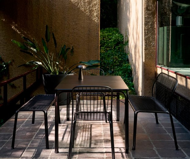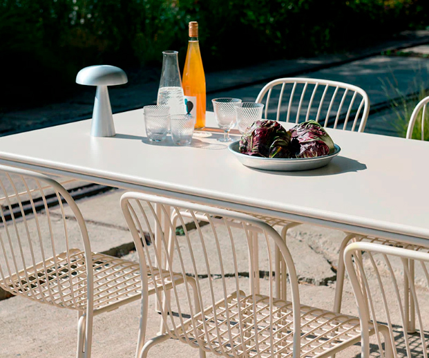 A Thorvald SC113 da &Tradition, desenhada pelo estúdio Space Copenhagen, é uma mesa de jardim que combina elegância escandinava com durabilidade para uso exterior. Inspirada na atmosfera neoclássica de Copenhaga, apresenta linhas leves e perfurações subtis que conferem carácter e leveza visual. Produzida em aço com acabamento resistente às intempéries, é ideal para refeições ao ar livre em terraços, jardins ou varandas. Funcional e intemporal, a Thorvald SC113 adapta-se facilmente a diferentes ambientes exteriores, mantendo um equilíbrio entre design contemporâneo e tradição. (Marca &Tradition)