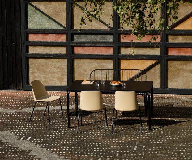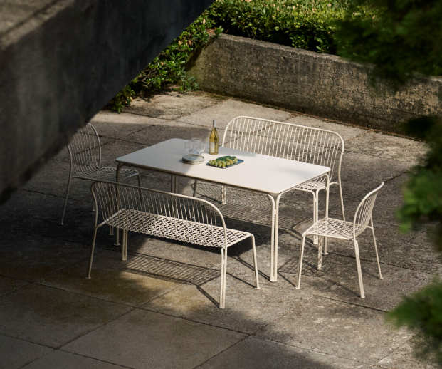 O Thorvald SC112 da &Tradition, desenhado por Space Copenhagen, é um banco de jardim que combina elegância escandinava com funcionalidade outdoor. Integrado na coleção Thorvald, destaca-se pela sua estrutura em aço com padrão perfurado, inspirado nos jogos de luz e sombra das paisagens urbanas. Leve, resistente e empilhável, é ideal para jardins, terraços ou espaços de restauração, oferecendo conforto e durabilidade sem comprometer a estética. O seu design versátil permite utilizá-lo de forma autónoma ou em conjunto com as restantes peças da coleção.(Marca &Tradition)