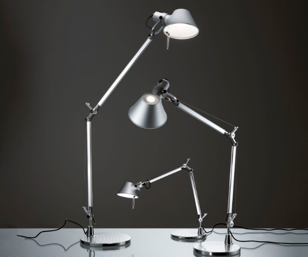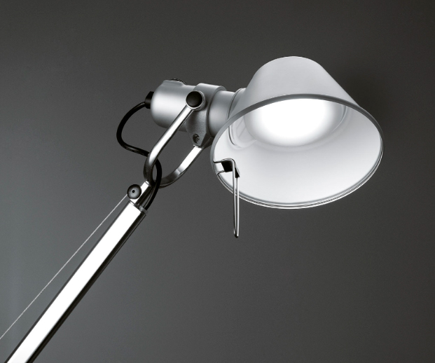 O Tolomeo Mini da Artemide, desenhado por Michele De Lucchi e Giancarlo Fassina, é um candeeiro de mesa com braços articulados em alumínio ajustáveis para uma iluminação precisa e flexível. Com base de Ø 20 cm, altura inicial cerca de 54 cm e extensão até ~108 cm, oferece funcionalidade ideal para secretárias ou zonas de leitura. A cabeça giratória em alumínio permite orientar a luz conforme necessário, combinando estética de design intemporal com utilidade diária. (Marca Artemide)