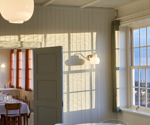 A família de candeeiros VL Ring Crown deriva de um modelo concebido pelo arquiteto Vilhelm Lauritzen para o edifício da emissora pública dinamarquesa em Copenhaga, na década de 1940. As versões de parede e pendente, com o seu formato orgânico característico, foram amplamente utilizadas. Para este projeto, Lauritzen criou também as luminárias VL38 e VL45. A VL Ring Crown nunca chegou a ser instalada no edifício, mas pouco tempo depois, foi lançada uma versão da Ring Crown baseada nos designs originais. (Marca Louis Poulsen)